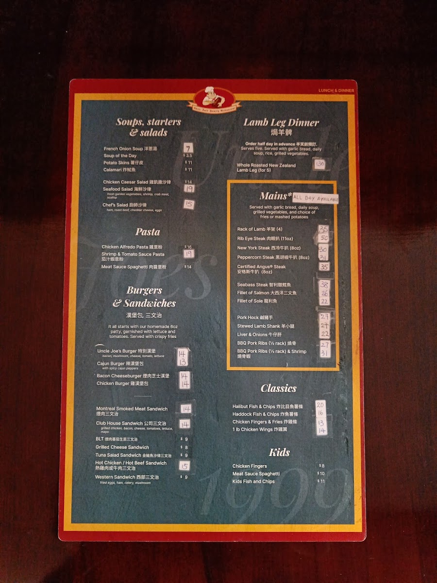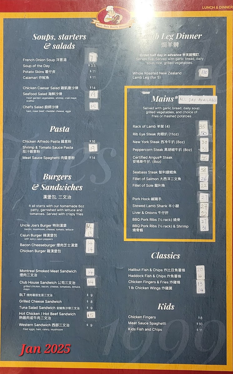 Uncle Joe’s Family Restaurant Menu